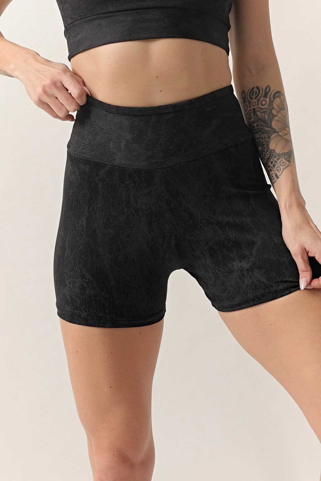 Short estampado, sublimado, tiro alto, cintura doble
