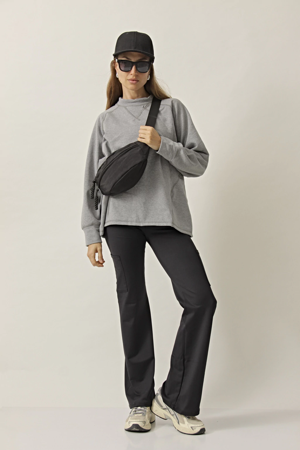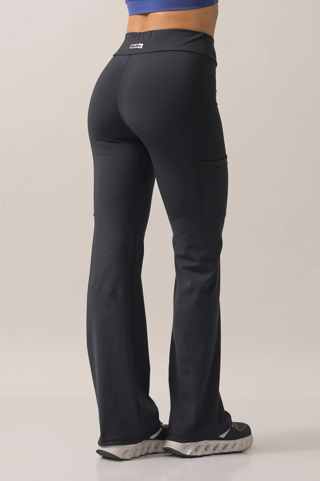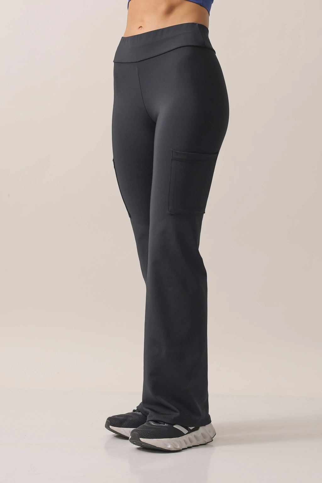 Calza recta con bolsillos en laterales, tiro alto en Microfibra elastano.