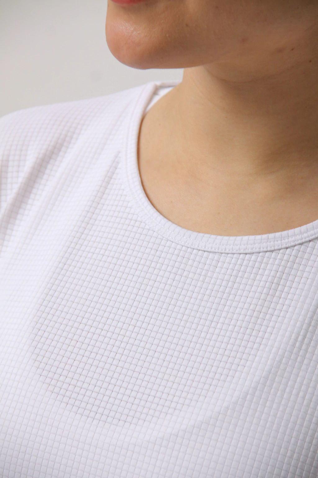 Si buscás una prenda fresca, cómoda y con estilo, esta remera es para vos. Confeccionada en microfibra cuadradito, se siente suave y liviana desde el primer momento. Su diseño suelto y con costuras visibles le da un toque moderno, ideal para acompañarte tanto en tus entrenamientos como en tus looks de todos los días.