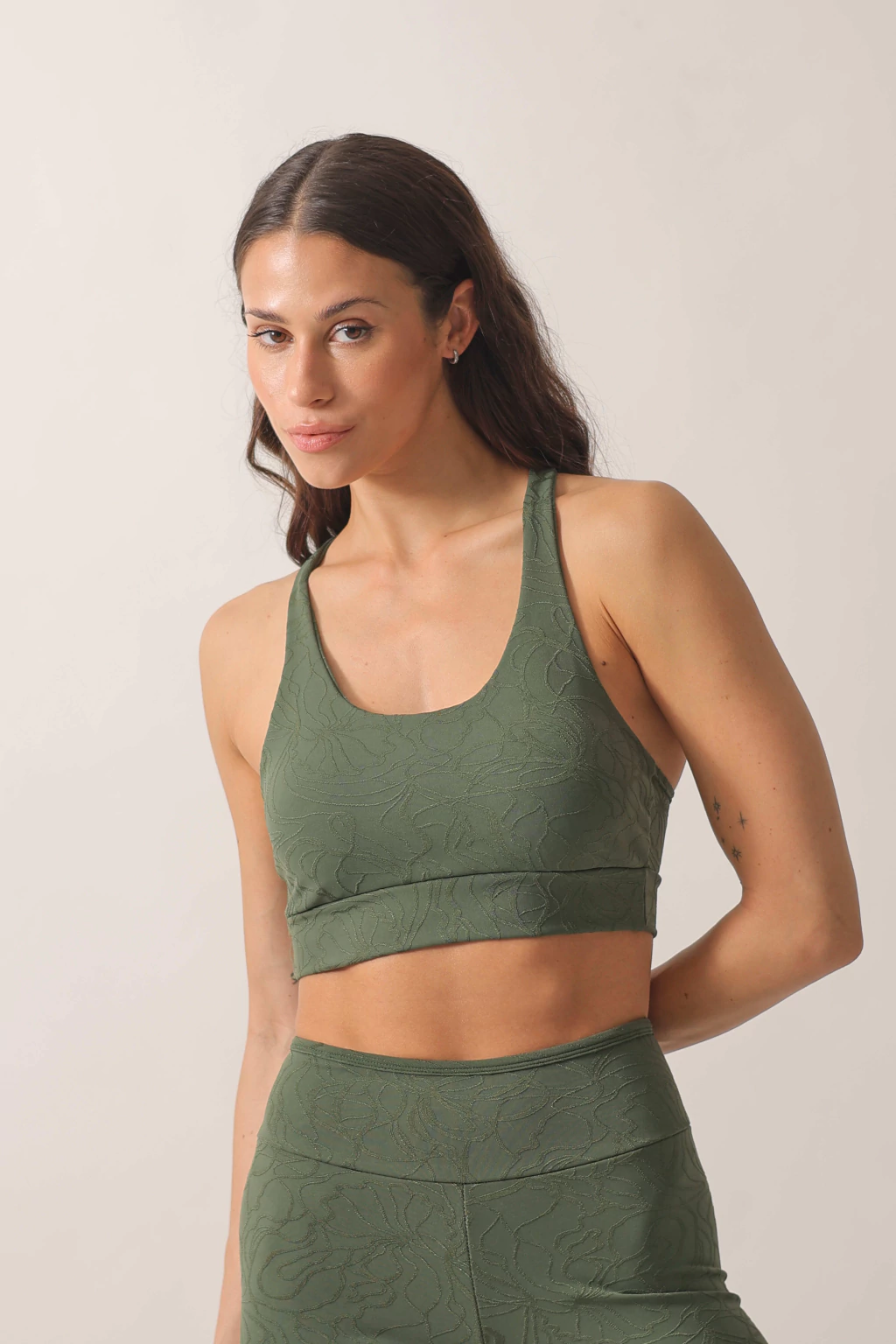 Nuestro Top Deportivo con Espalda Olímpica está confeccionado en tela Bongo, un textil importado de alta calidad, apto para traje de baño, moda y fitness.