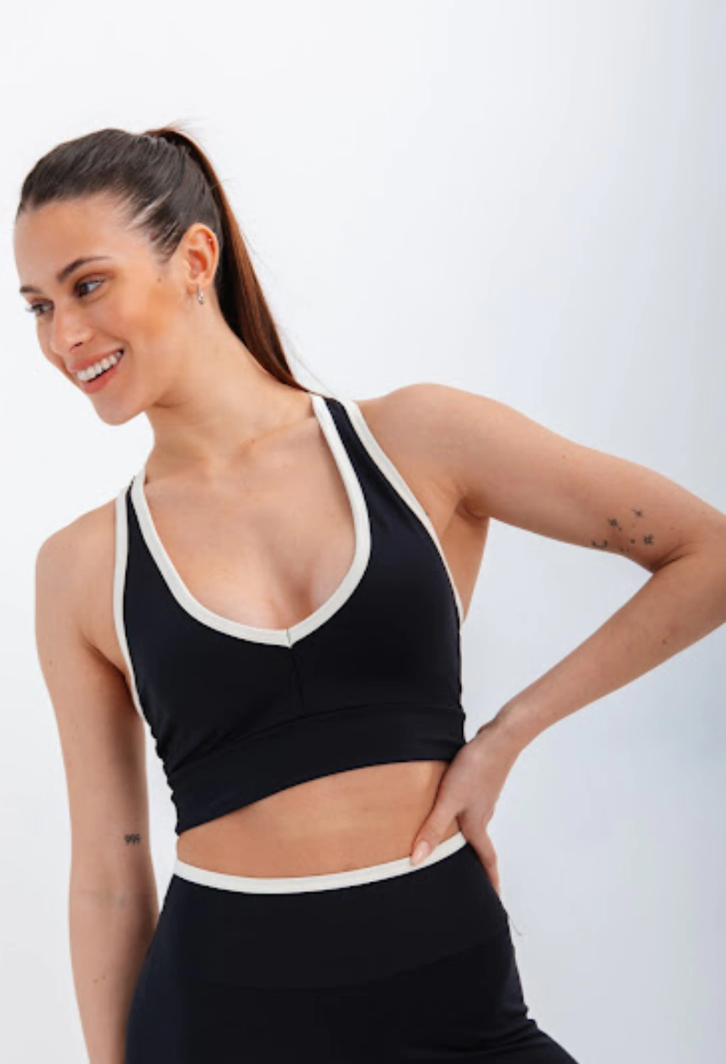 Este top combina elegancia y confort en un diseño pensado para acompañarte en cada movimiento. Con escote en V y espalda olímpica, realza la figura de manera femenina y funcional. Está confeccionado en microfibra poliamida elastano, un tejido suave y resistente que brinda comodidad durante todo el día.